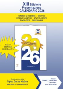 Siamo alla tredicesima edizione del nostro calendario e questo è un impegno che porteremo avanti nel tempo. Il 2026 è molto importante per noi, in quanto ricorre il ventesimo anno della fondazione della SIPBC ONLUS-MOLISE. Sperando di fare cosa gradita a quanti, in questi anni, ci hanno seguito e supportato… Read more »