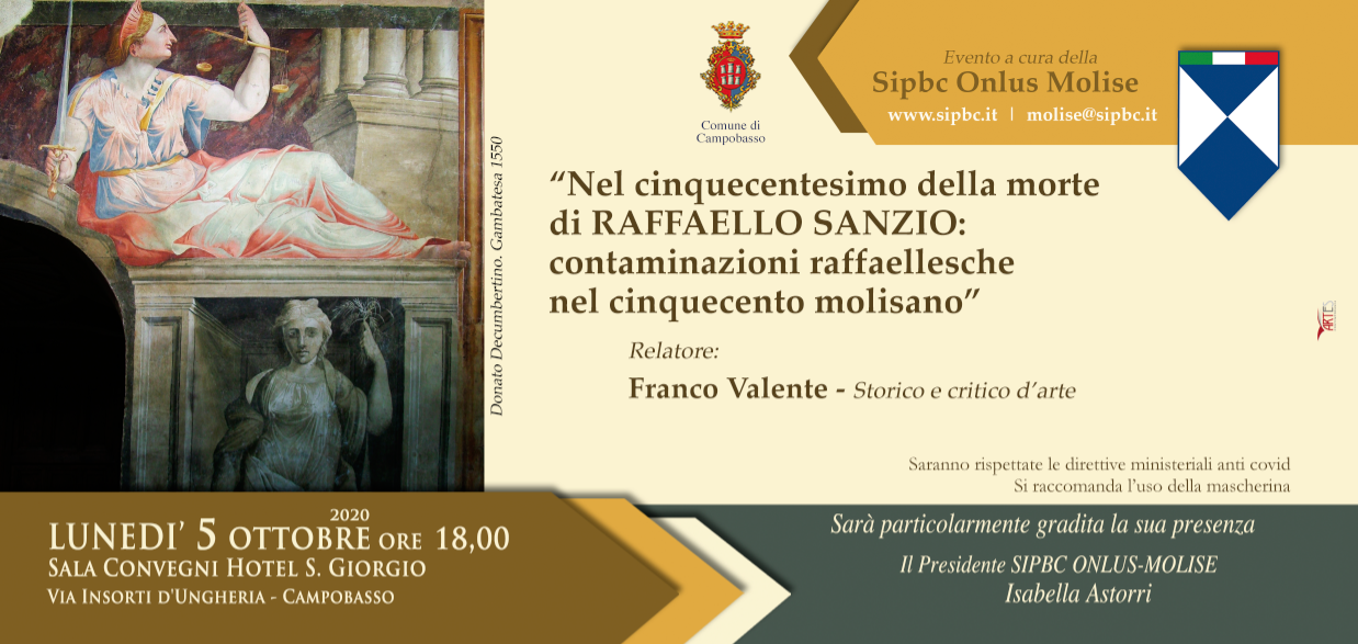 Lunedì 5 ottobre 2020 Sala Convegni Hotel S. Giorgio Campobasso. Arch. Franco Valente: “NEL CINQUACENTESIMO DELLA MORTE DI RAFFAELLO SANZIO: CONTAMINAZIONI RAFFAELLESCHE NEL CINQUECENTO MOLISANO”